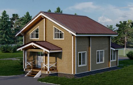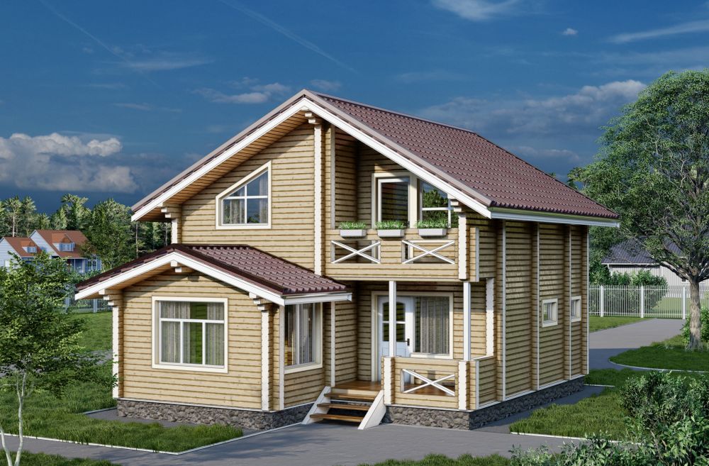 Современная европейская архитектура этого дома из профилированного бруса удивит своей красотой и элегантностью. Удобный и практичный во всех отношениях. Интересные и притягательные геометрические формы будут радовать взгляд при каждом возвращении в дом, а грамотная планировка поможет органично и со вкусом заполнить пространство этого дома из бруса.